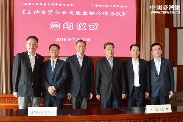 7月10日,上海市政府台办与上海银行签署了新一轮《支持台资企业发展金融合作协议》。(图片来源:上海市台办)