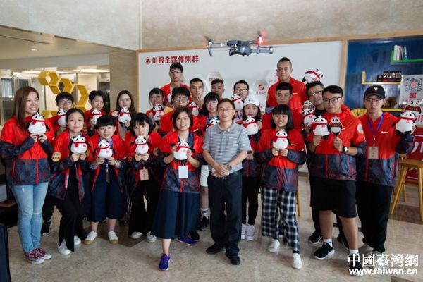 两岸学子在四川日报报业集团合影留念。(图片来源:四川省台办)