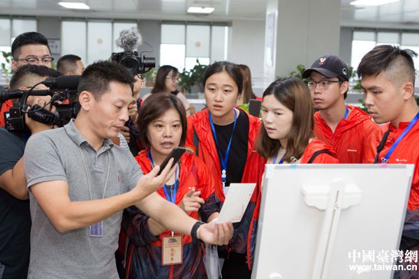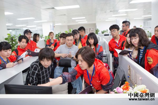 台湾师生参观四川日报《航拍四川》办公室。(图片来源:四川省台办)