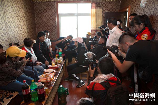 在藏族同胞家里采访拍摄。(图片来源:四川省台办)
