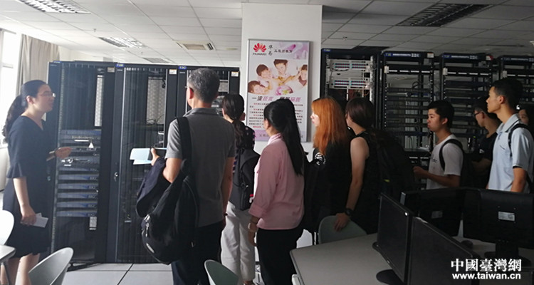 参观了山东工商学院的创业中心、商学实验中心、计算机实验室和第二课堂展示中心并进行技术话题交流(图片来源:山东省台办)