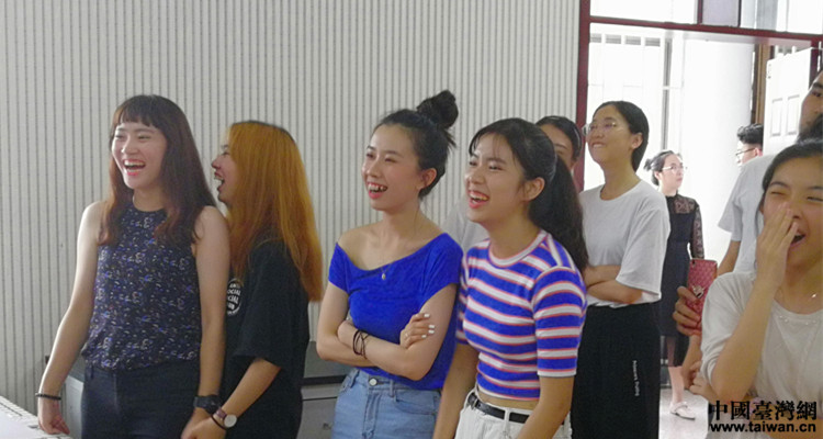 座谈会结束后,两岸学生分别进行了才艺展示,有流行的歌曲,有动感的舞蹈,有古典的戏曲,还有两岸学生自觉走到一起合唱的《当我们一起走过》和《刚好遇见你》。随后的互动游戏将整个联谊活动推向了高潮,灿烂的笑容绽放在每个青春的脸庞。
