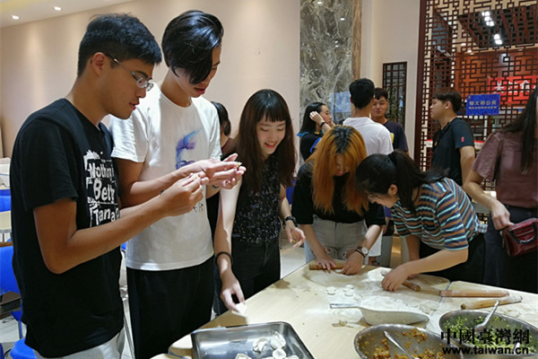 另外,工商学院还专门安排了两岸学生一起体验包水饺的活动,学生们跃跃欲试,积极参与。他们早已在之前的活动中互相认识并成为朋友,在包水饺的过程中分工合作,互相配合,互相取经,纷纷为自己亲手包的水饺感到自豪,为伙伴们的进步点赞。
