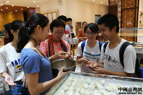 两岸学生一起体验包水饺的活动(图片来源:山东省台办)
