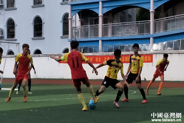 北海市第六中学与屏东东港学校在球场上展开激烈比拼(图片来源:北海市台办)