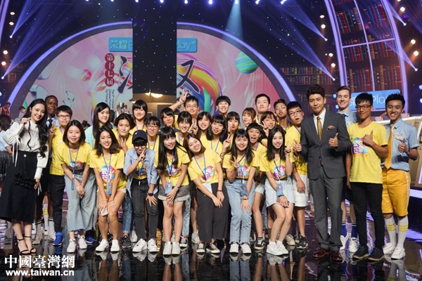 录制结束后,台湾实习生和《汉语桥》节目的主持人、参赛选手等合影留念。(中国台湾网湖南省台办通讯员余林钗)
