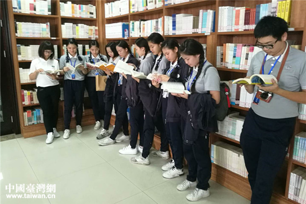 研习营的同学们在图书馆阅览图书。(图片来源:鞍山市台办)