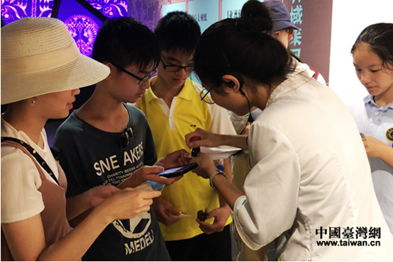 学生与藏宝处工作人员对礼仪暗号,收集图章和点赞。(中国台湾网 赵苗青 摄)