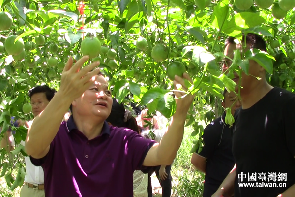 考察太平顶百香果种苗种植基地。(图片来源:玉林市台办)