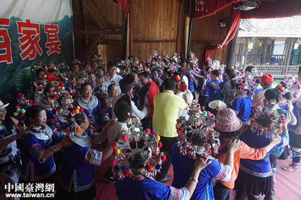 参访团与侗族人民一起跳舞。(图片来源:柳州市台办)