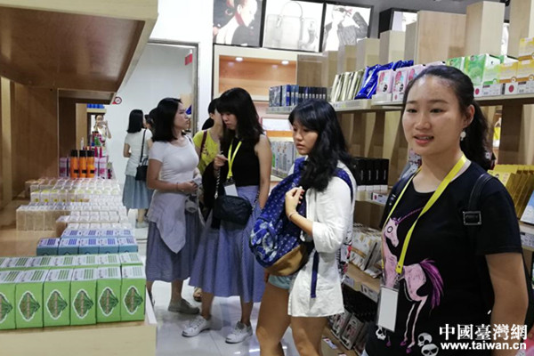 同学们在成都国际铁路港“蓉欧荟”选购进口商品。(图片来源:四川省台联)