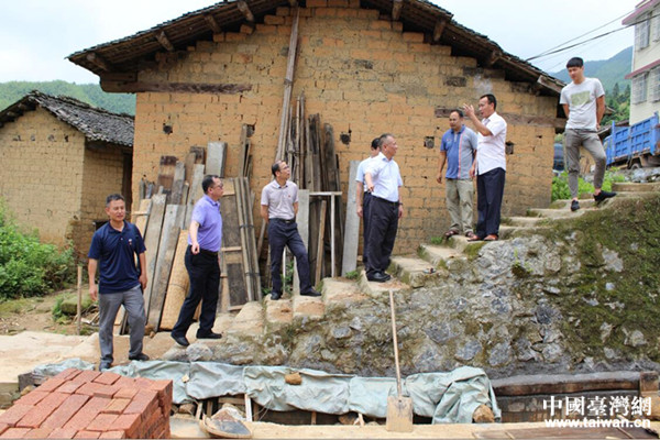 察看贫困户危房改造现场。(图片来源:广东省台办)