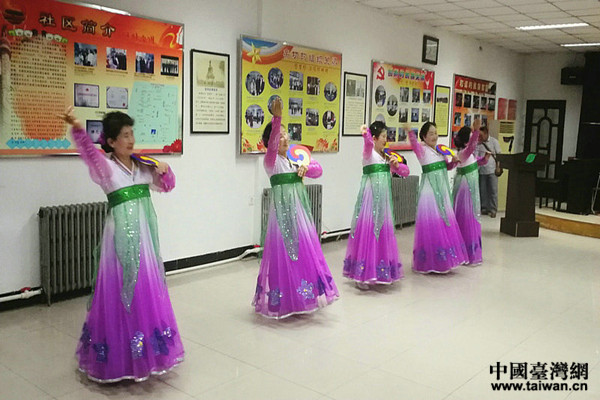 安图社区为台湾同胞精心准备了朝鲜族特色的打糕、米酒、饮料及东北特产的水果等,并组织老教师协会与老年协会为台湾嘉宾献上了一场精彩的民族表演,两岸同胞汇聚一堂,边品尝美食,边欣赏表演。伴随着台湾歌曲《阿里山姑娘》的美妙旋律,两岸同胞载歌载舞,共同上演了两岸一家亲的美好画卷。