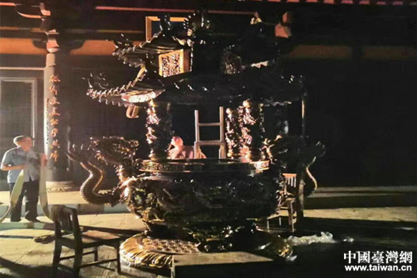 7月28日晚,合肥市包公园连夜吊运,完成台湾海清宫包公祖庙赠送香炉的安装工作。今年底,台湾四湖乡海清宫有关人员将前来参加“揭炉”仪式。