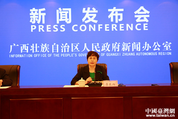 广西台办主任介绍《关于促进桂台经济文化交流合作的若干措施》制定情况。(图片来源:广西台办)