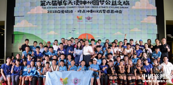 中国台湾网8月6日上海讯 8月3日,由国务院台湾事务办公室、上海市政府台湾事务办公室指导的第六届台湾单车天使公益活动在上海电影博物馆举行了终点冲刺和联谊感恩仪式,代表本届1000公里的神州骑行在上海成功圆梦。市台办、海促会、上影集团、主协办方有关负责人及两岸体育公益大使、影视新星、歌手、骑手、志愿者等近200人出席。