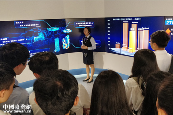 讲解老师为学生介绍腾讯公司发展历程。(中国台湾网 李晔清 摄)