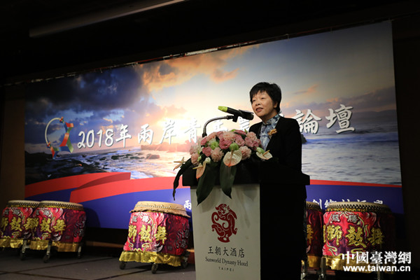 中国国民党中常委江硕平在开幕式上致辞。(图片来源:广西台办)