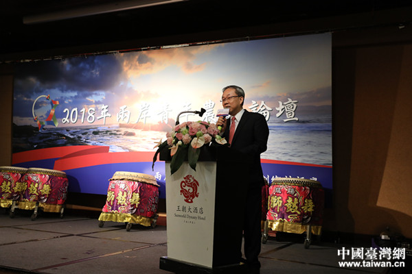两岸青年交流总会理事长张茂林在开幕式上致辞。(图片来源:广西台办)