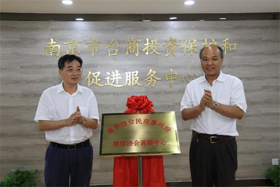 中国台湾网8月9日南京讯 昨天下午,南京市台商法律咨询服务团成立暨南京涉台民商事纠纷律师协会调解中心揭牌仪式在南京市台商投资保护和促进服务中心举行,省台办副主任王鲁宁、南京市政府副秘书长唐建荣,以及市台办、市司法局、市发改委、市中院、市仲裁委等单位领导出席了成立仪式,市台协、市律协、市服务业联合会以及相关律师事务所、南京公证处、相关司法鉴定机构等单位负责人和部分台商代表共同到场见证。