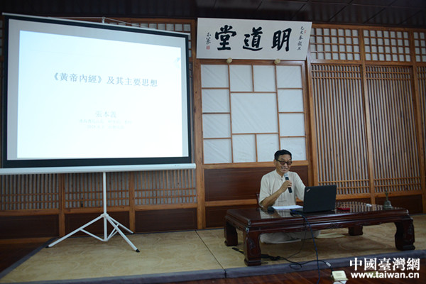 连海书院山长张本义先生为学员们详尽解读了《黄帝内经》中的《上古天真论》《四气调神大论》以及《天年》等篇章中的中医精髓思想。先生告诉我们如何保有“天真”本性,如何获得内心的安稳与幸福;把握“法于阴阳,和于术数,食饮有节,起居有常,不妄作劳,形与神俱”的养生长寿要点;用一张太极图讲解春、夏、秋、冬四季养生要义。张先生的授课内容丰富、妙语连珠、引经据典、深入浅出,学员们听得津津有味,入心入神,同时张先生不失幽默风趣的授课方式,引来听众阵阵会心大笑,掌声不断,让听者在不知不觉中领悟了中华文化的博大精深和无穷魅力。课后,大家纷纷表示,传承和弘扬中华传统文化是两岸青年的共同责任和义务,今后要更加深入、系统的学习和研究中华传统文化,让中华文化在两岸乃至世界发扬光大。