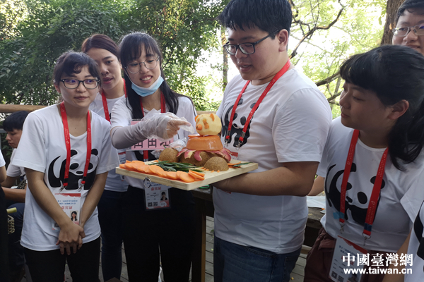 两岸青年在制作大熊猫食物。(中国台湾网 郜利敏 摄)
