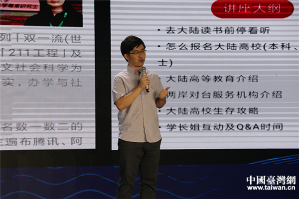 两岸青年代表林承铎上台演讲。(中国台湾网 张露露 摄)