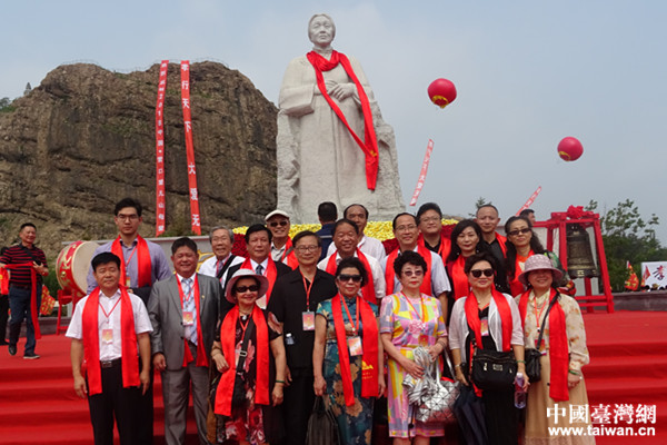 台湾嘉宾和各界人士共同向母亲塑像献花。(图片来源:辽宁台办)