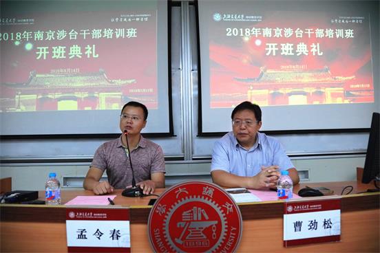 在开班仪式上,南京市台办主任曹劲松作了动员讲话。他要求参训人员提高认识,明确培训的必要性;学以致用,强化培训的实效性;从严自律,增强学习的自觉性,高标准完成培训学习任务。