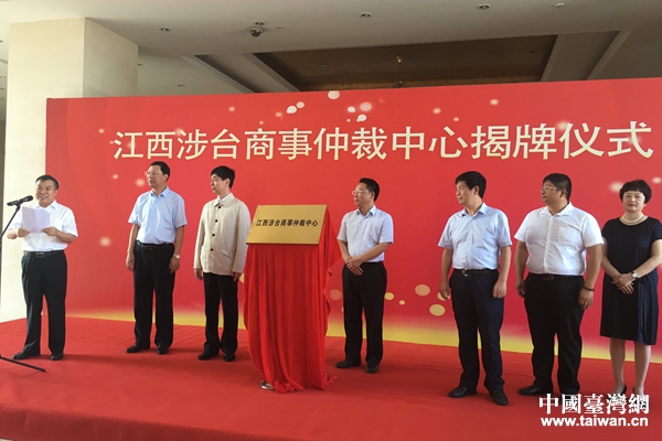 江西涉台商事仲裁中心23日正式揭碑成立。(图片来源:江西省台办)