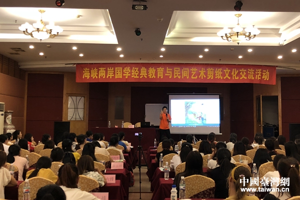 中国台湾网8月27日赣州讯 8月18日至19日,海峡两岸国学经典教育民间艺术剪纸交流活动在赣州举行。教育部中国人生科学学会副会长、中国人生科学学会海峡少儿教育专业委员会理事长陈月仙,中国人生科学学会海峡少儿教育专业委员会常务副理事长姚兵岳,中国高级美术工艺师、“北京剪纸”非物质文化遗产代表性传承人、中国人生科学学会海峡少儿教育专业委员会特聘专家徐阳,中国人生科学学会海峡少儿教育专业委员会办公室主任崔秀杰,台湾民间国学推广与剪纸传人萧素娥等嘉宾应邀参加了本次活动,并现场传授剪纸技艺。来自赣州、崇义的幼儿教师和小学教师共计150余人参加了培训。