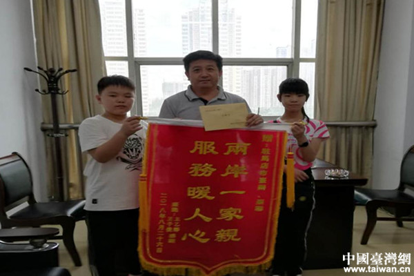 中国台湾网8月28日驻马店讯 8月26日,河南省驻马店市台办、台联收到台胞王子俊、王乙婷小朋友送来的一面印有“两岸一家亲,服务暖人心”的锦旗和感谢信。