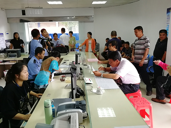 9月1日上午,漳平市永福镇派出所办证大厅内聚集了很多等待申领台湾居民居住证的台商台农。(漳平台创园供图)