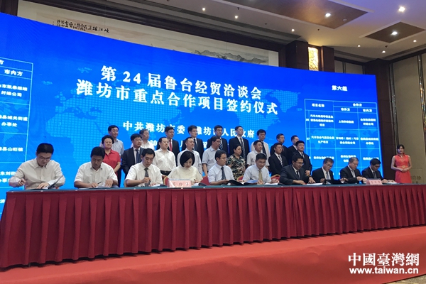 第24届鲁台经贸洽谈会潍坊市重点合作项目签约仪式现场。(中国台湾网 赵苗青 摄)