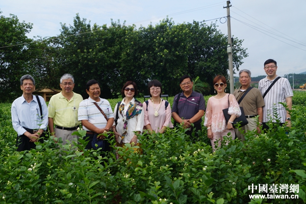 台湾制茶工业同业公会一行考察横县中华茉莉园。(图片来源:广西南宁市横县台办)