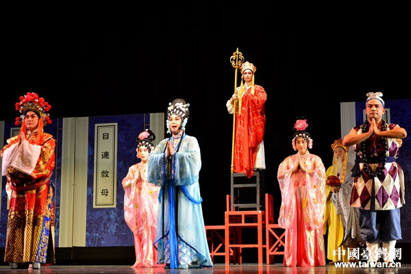 中国台湾网9月7日南宁讯 近期,广西南宁市民族文化艺术研究院(以下称南宁市艺研院)演职人员一行15人首次携南派传统粤剧《目连救母》赴台,与台湾戏剧学院的12名同学合作,在南投县演艺厅、新北市力行福德宫户外露天舞台演出,共同演绎中华传统“百善孝为先”的感人故事,受到当地民众的热捧。