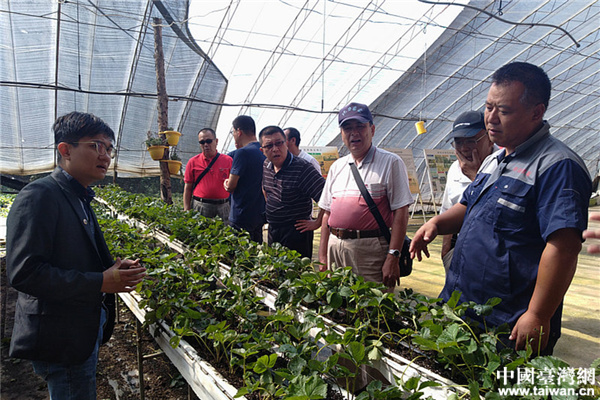考察新民市草莓种植基地。(图片来源:沈阳市台办)