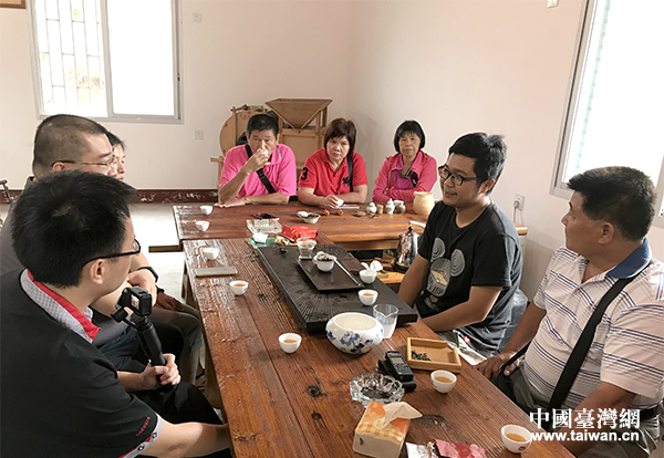 鸿鼎农场开发有限公司董事长李志鸿(右二)向参访团讲述在大陆创业发展的情况。(中国台湾网 普燕 摄)