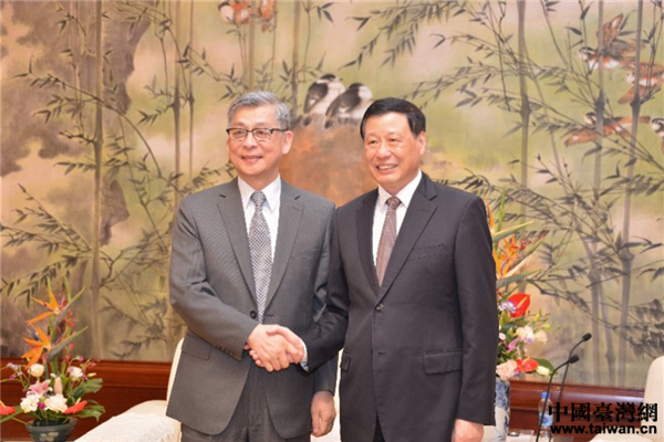 应勇与蔡宏图握手。(图片来源:上海市台办)