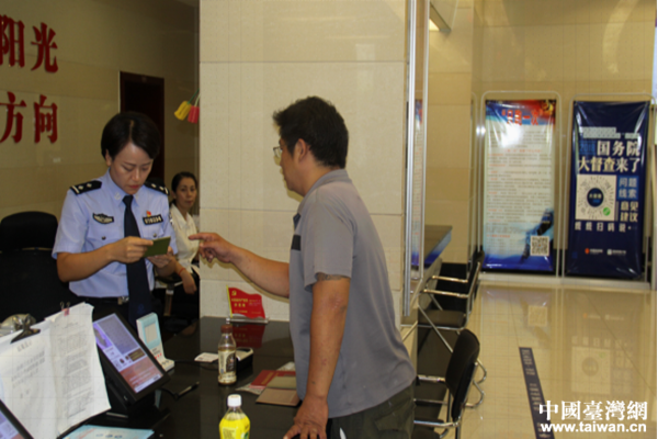 中国台湾网9月18日攀枝花讯 国务院办公厅印发的《港澳台居民居住证申领发放办法》于9月1日正式实施。近日,台胞钟任杰一早来到米易县政务中心户籍窗口,经过资料录入、指纹采集、照片采集等环节,10余分钟后钟任杰拿到了居住证领取凭证。“这下好了,有了居住证,办理银行卡、申领驾驶证、网上购票就方便多了。”钟任杰激动地说。