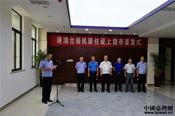 2018年9月12日在信州公安分局户政大厅举办港澳台居民居住证上饶市首发式活动。市委台办主任王旻,副主任姜志民、市公安局党委委员、副局长戴峰,以及市委外侨办、信州区、信州公安分局等部门的相关领导,港澳台居民和新闻媒体记者共计30余人参加了首发仪式。首发仪式上,庄秋万、杨霞等六名港澳台居民代表依次到业务窗口通过提交《证件领取凭条》、核验指纹,顺利地完成了领证手续。