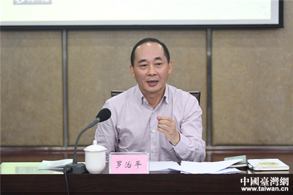四川省台办主任罗治平向采访团介绍四川基本情况。(图片来源:四川省台办)