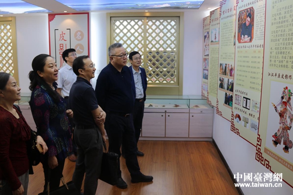 武汉市台办参观了解学校皮影特色课程。(武汉市台办 王炼 摄)