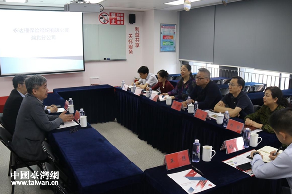 武汉市台办在永达理保险公司与企业负责人沟通交流。(武汉市台办 王炼 摄)