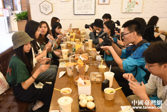 采访团在群光广场享受台湾美食与成都名小吃。(图片来源:四川省台办)