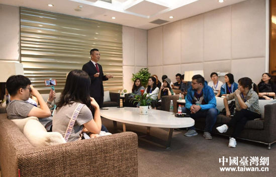 台商尤荣川向采访团介绍企业精致服务理念。(图片来源:四川省台办)