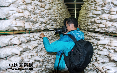采访团深入生产厂房了解杏鲍菇生长情况。(图片来源:四川省台办)