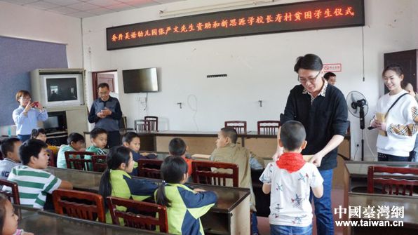 中国台湾网10月11日德阳讯 近日,四川省德阳市台资企业协会副会长、四川乔登美语培训事业机构执行董事张严文及其夫人李丹,先后前往德阳市旌阳区、新镇长寿村、中江县南山镇、中江县永太镇,向40名贫困家庭的中小学生捐赠助学金共计21900元。