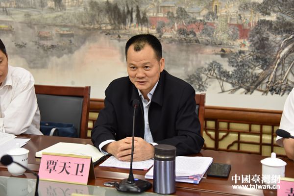 玉林市委副书记、组织部部长覃天卫在会上讲话。(图片来源:玉林市台办)
