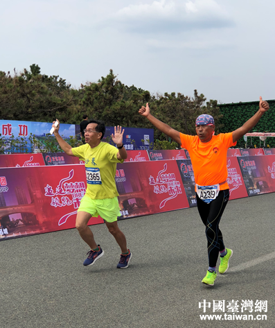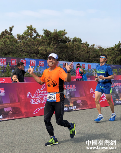 中国台湾网10月17日日照讯 10月14日上午7时30分,2018日照国际马拉松在日照市政府人民广场鸣枪开跑。经过顽强拼搏,台湾地区代表队19名选手顺利完成比赛,来自台湾新北市的马拉松协会副会长温家成先生以3小时32份3秒的成绩冲过全马终点,拔得全队头筹。